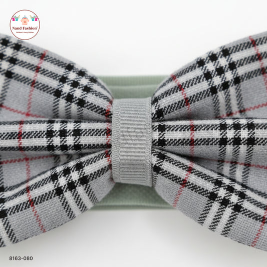 Boys Grey Checked Bow Tie Elastic Hair Band