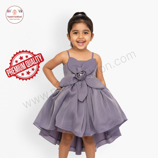 Elegant Lavender Flower Applique Party Wear Frock for Baby Girls with Layered Flare