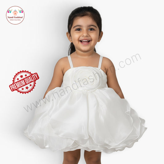 Snow White Rose Applique Party Wear Frock for Baby Girls with Puffy Layered Skirt