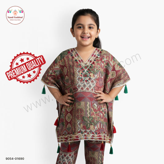 Girls Multicolor Printed Cape-Style Kurta Pair with Tassel Detailing – Festive Ethnic Wear