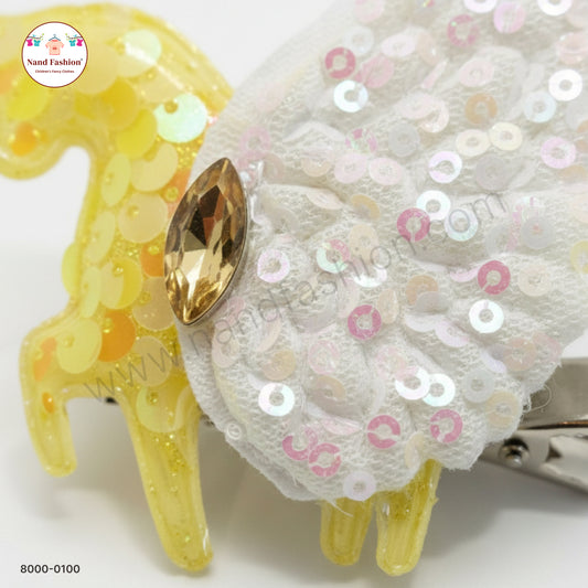 Baby Girl Yellow Unicorn Sequin Hair Pin with Wings – Premium Party Wear