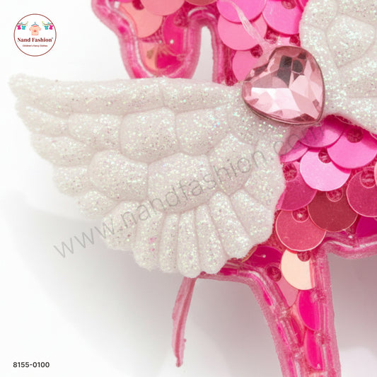 Baby Girl Pink Unicorn Sequin Hair Pin with Wings – Premium Party Wear