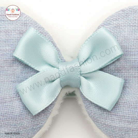 Baby Girl Pastel Blue Bow Nylon Headband – Soft Stretch Hair Band