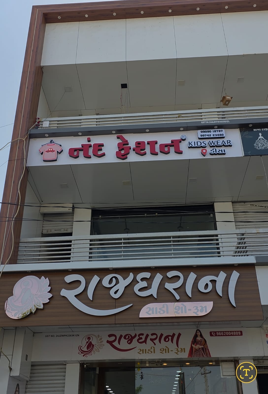 Click to VisitNand Fashion 1st Floor, JP Complex, Opposite LEO School, Chandralok Road, Deesa, Banaskantha, Gujarat.