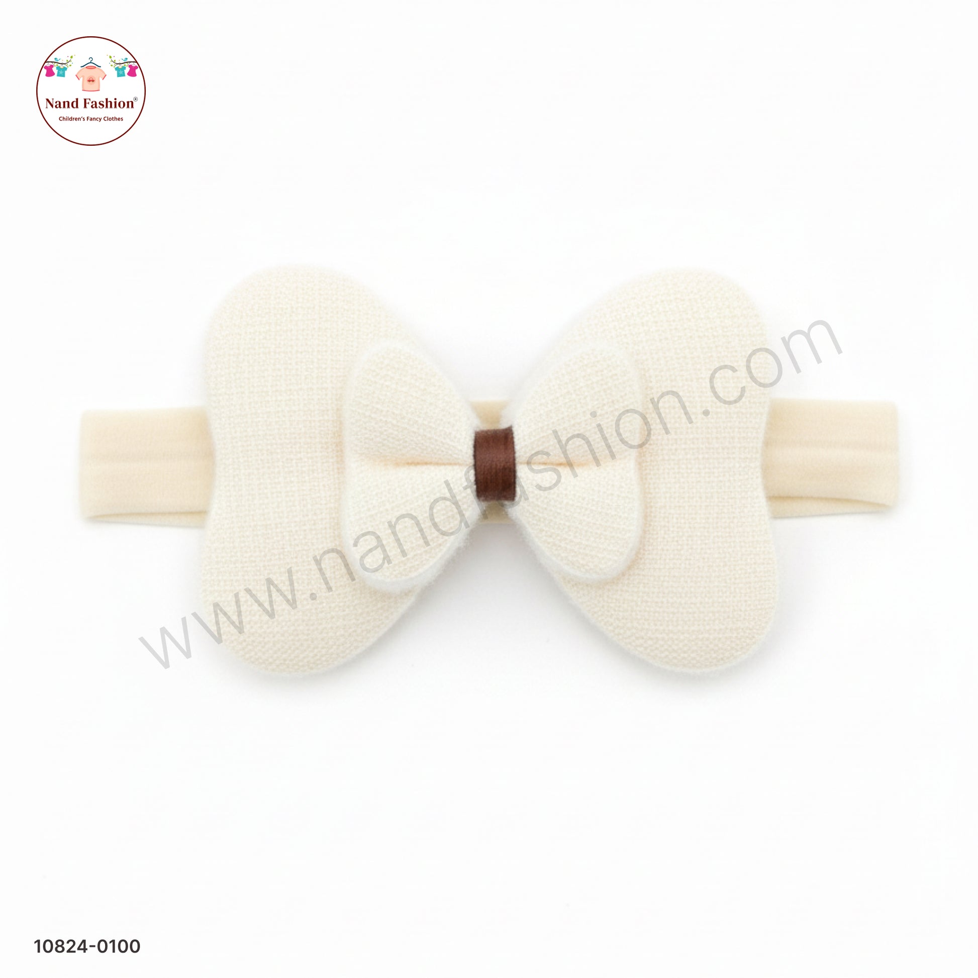 Baby Girl Cream Bow Nylon Headband – Soft & Stretchable