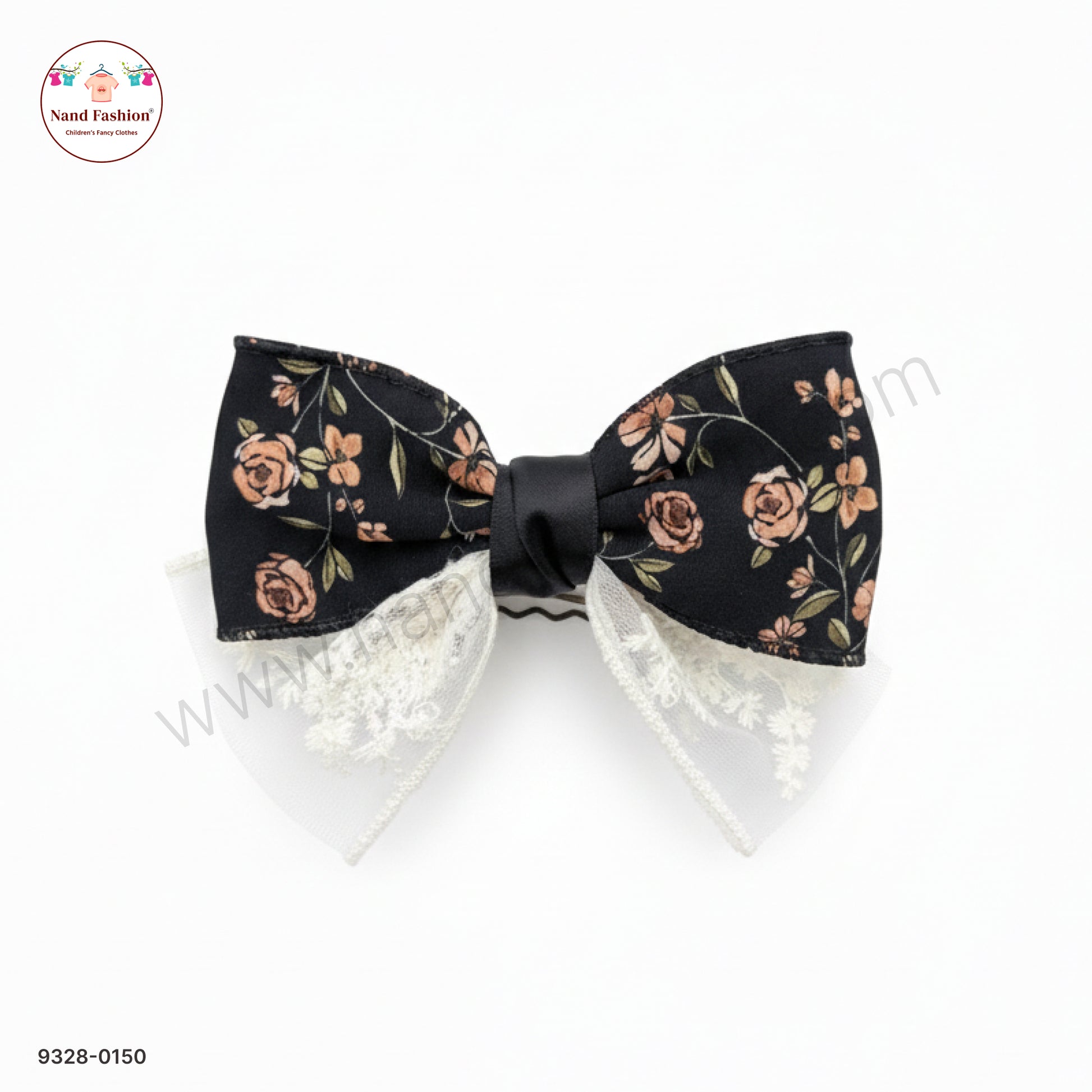 Black Floral Designer Bow Hair Pin for Baby Girls