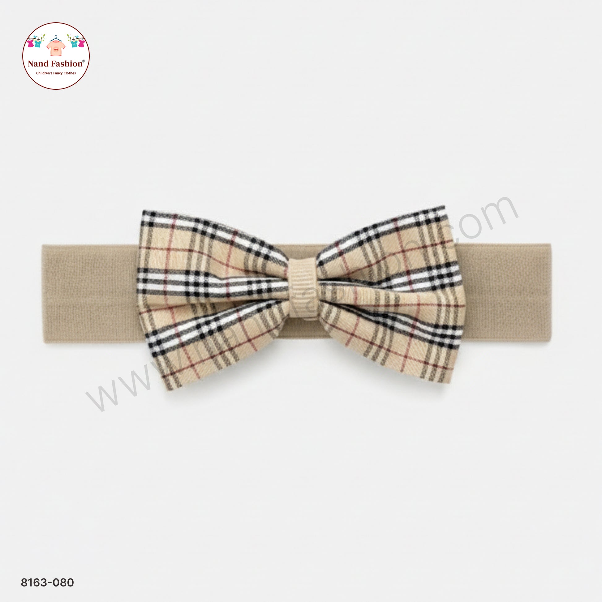 Boys Beige Checked Bow Tie Elastic Hair Band