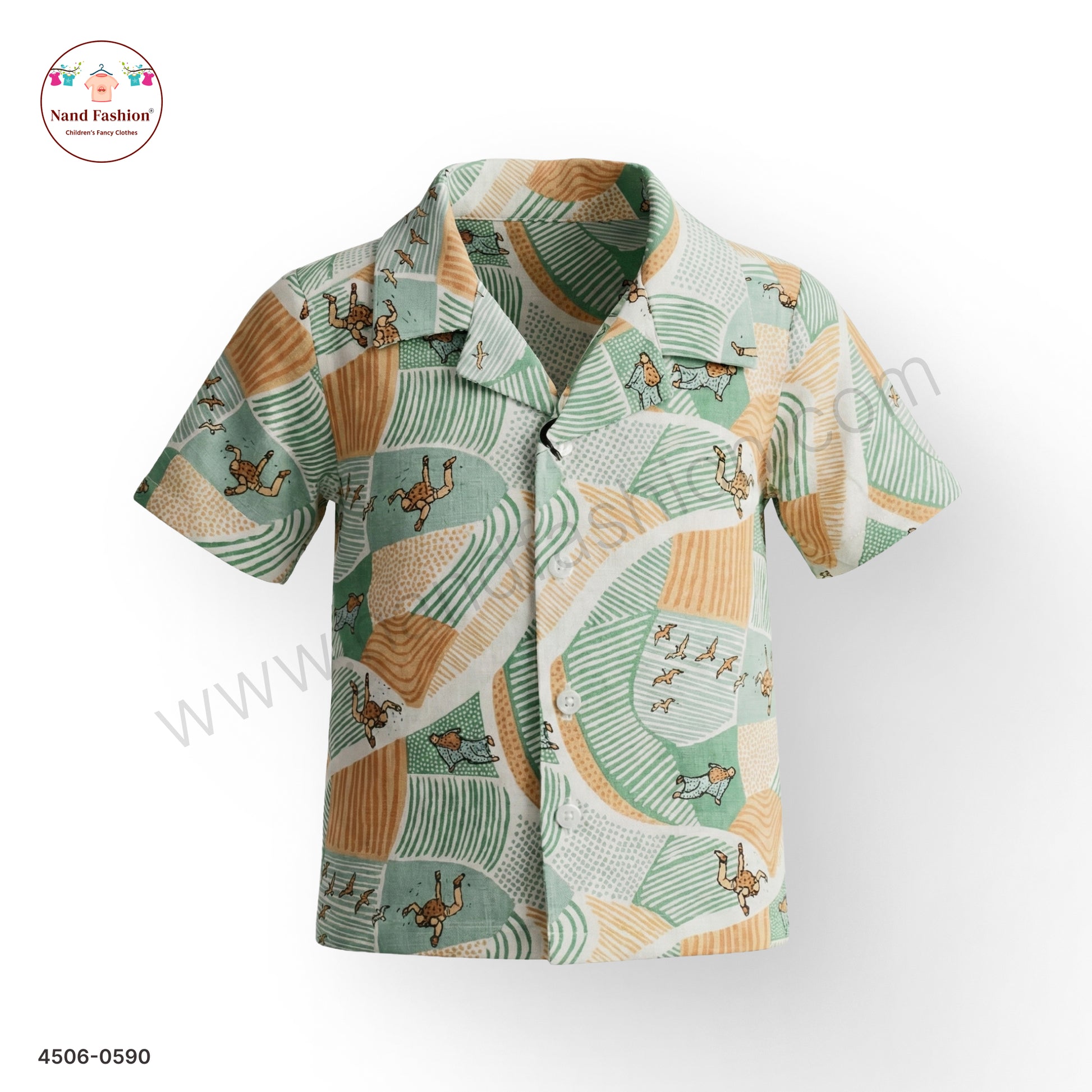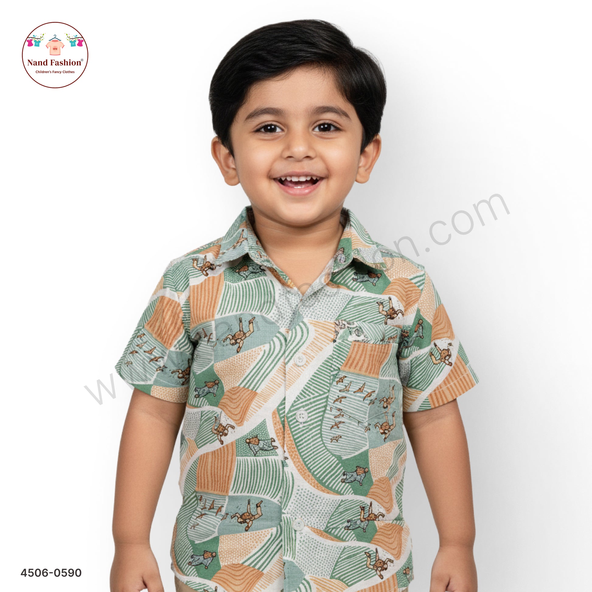 Boys Green & Beige Animal Print Cotton Shirt – Half Sleeve Casual Wear Perfect for your little one's everyday adventures, this charming cotton shirt combines comfort with eye-catching style. The vibrant green and beige animal print design adds personality to any casual outfit, while the breathable cotton fabric keeps him cool and comfortable throughout the day. Half sleeves make it ideal for warm weather play, school outings, or relaxed family time. Easy to care for and built to withstand active play, this versatile piece is a wonderful addition to any boy's wardrobe.