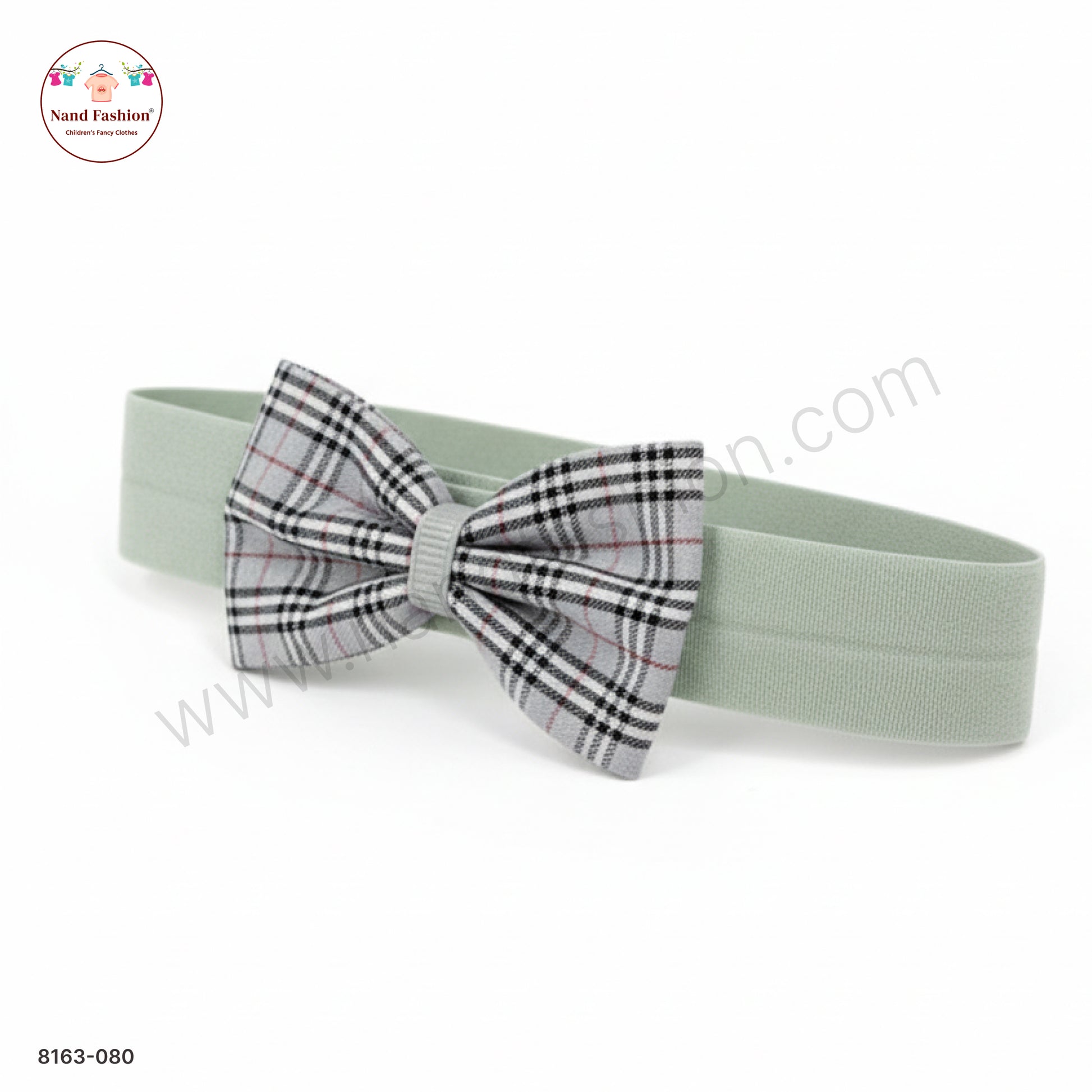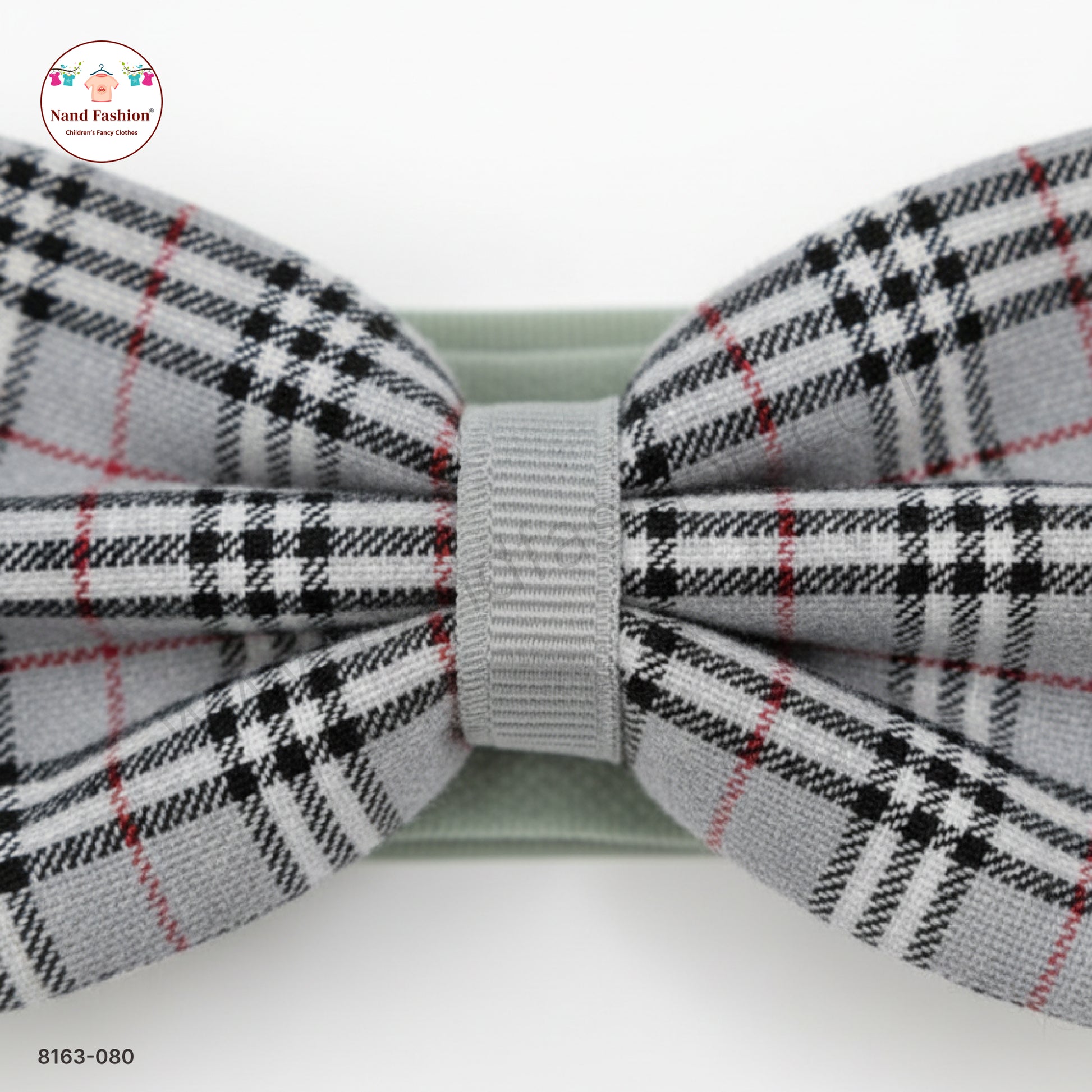 Boys Grey Checked Bow Tie Elastic Hair Band