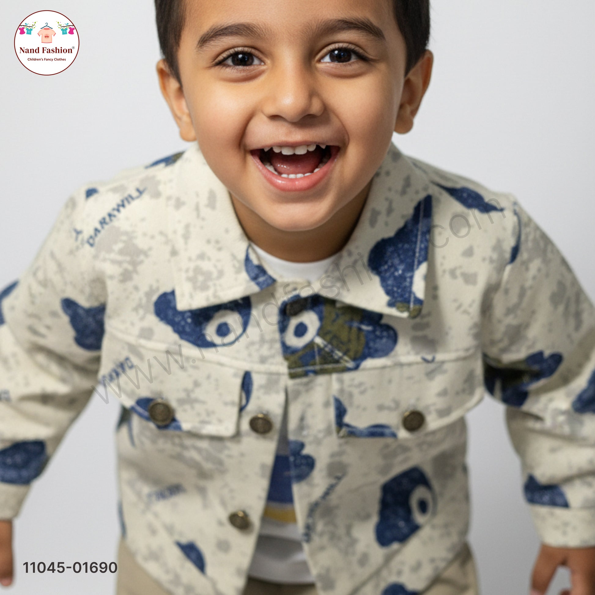 Give your boy a complete outfit solution with this thoughtfully assembled three-piece collection. The eye-catching printed jacket serves as a statement layer that pairs perfectly with the included basic t-shirt, creating multiple styling combinations. Practical cargo pants featuring useful pockets keep essentials within reach during play and exploration. Whether for school days, weekend outings, or casual hangouts, this set delivers comfort without compromising on style. Crafted with durability in mind, these pieces are built to handle the energy and movement of active boys while maintaining their appearance wash after wash.