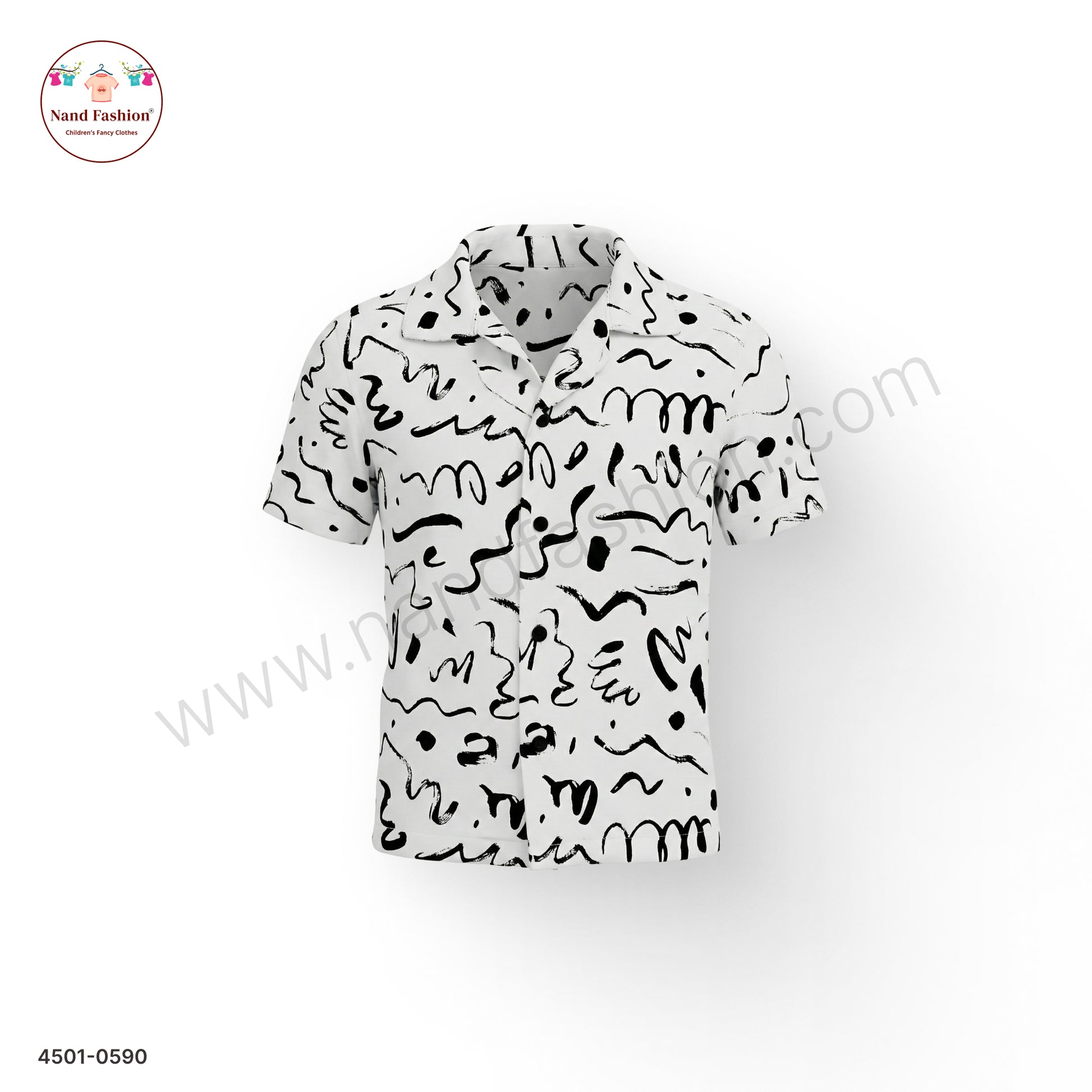 Boys White Abstract Scribble Print Cotton Shirt – Half Sleeve Casual Wear Perfect for your young one's everyday adventures, this cotton shirt features a playful abstract scribble print that adds personality to any casual outfit. The breathable cotton fabric keeps him comfortable throughout the day, while the half-sleeve design is ideal for warm weather wear. Easy to style with jeans or shorts, this versatile piece is a must-have addition to his wardrobe. Great for school, playdates, or weekend outings.