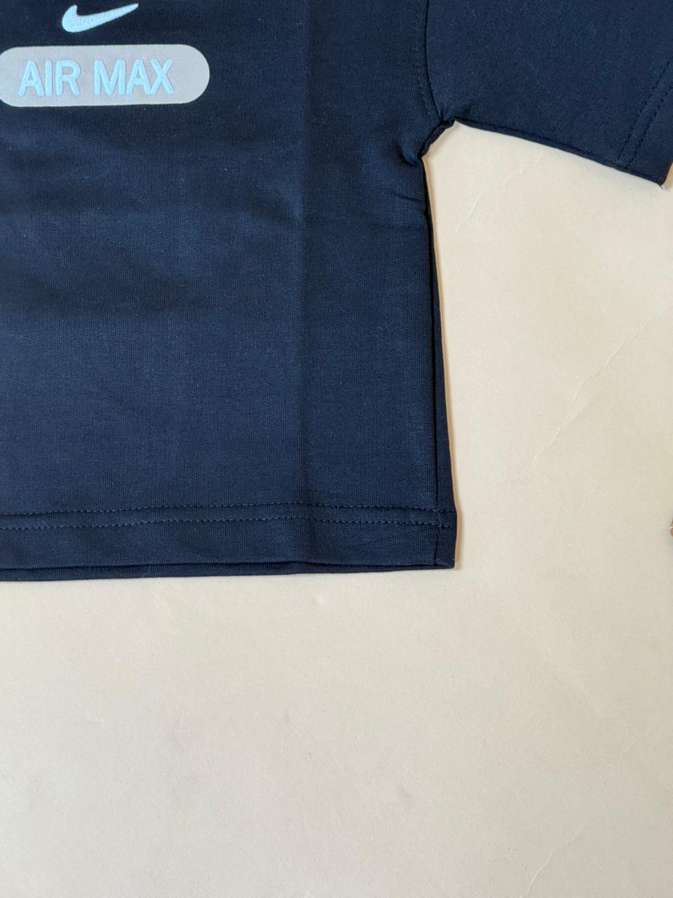 This black drop shoulder t-shirt featuring a bold "Air Max" print is perfect for boys who want to stay stylish and comfortable. Made with soft fabric, it ensures all-day comfort for active kids. Its trendy design makes it an ideal choice for casual wear, combining fashion and ease effortlessly.