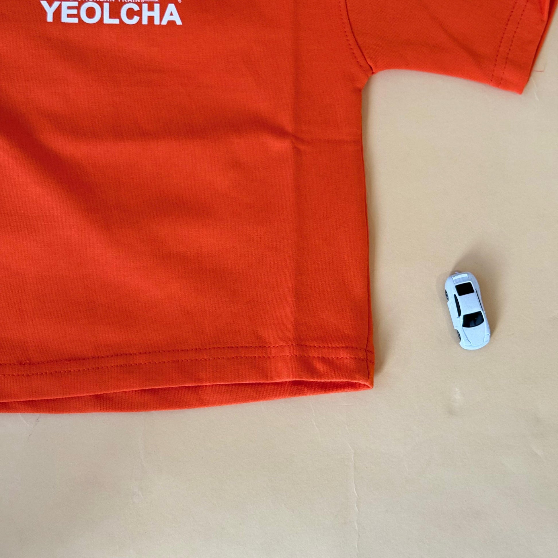 This bright orange "Yeolcha Korean Train" drop shoulder T-shirt is a perfect blend of comfort and style for boys. Featuring a cool train print, it adds a trendy edge to your child’s street fashion wardrobe. Designed for easy movement and durability, it’s an ideal choice for active kids who love vibrant, eye-catching outfits.
