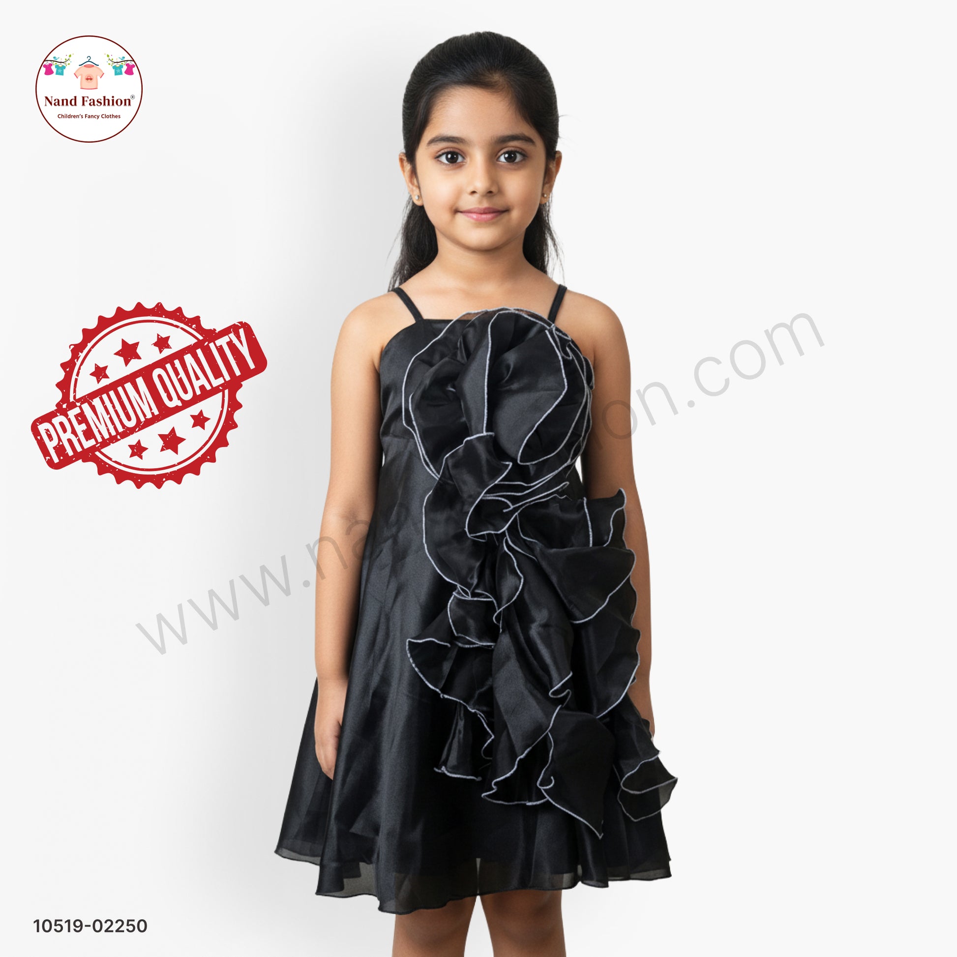 Elevate your daughter's special occasions with this stunning black organza party frock. The dramatic statement ruffle detailing combined with an intricate floral design creates an eye-catching look that's perfect for celebrations, festivals, and formal events. Crafted from premium organza fabric, this frock offers a graceful drape and comfortable fit for all-day wear. The sophisticated black hue pairs beautifully with any accessories, making it versatile for various occasions. Whether it's a wedding, birthday party, or cultural event, this elegant piece ensures your little one looks absolutely radiant and confident.