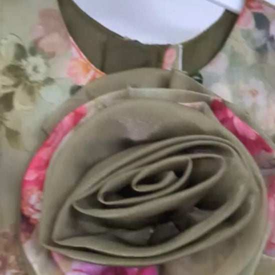 Celebrate your little one's special moments in this enchanting floral party wear frock. Crafted from premium organza, this stunning gown features an elegant green and purple rose design that captures attention and admiration. The lightweight, breathable fabric ensures comfort throughout the day, whether it's a birthday celebration, wedding, or festive gathering. The intricate floral detailing adds a touch of sophistication and grace, making your daughter feel like a princess. Perfect for creating lasting memories at any occasion, this dress combines quality craftsmanship with timeless style that she'll love wearing.