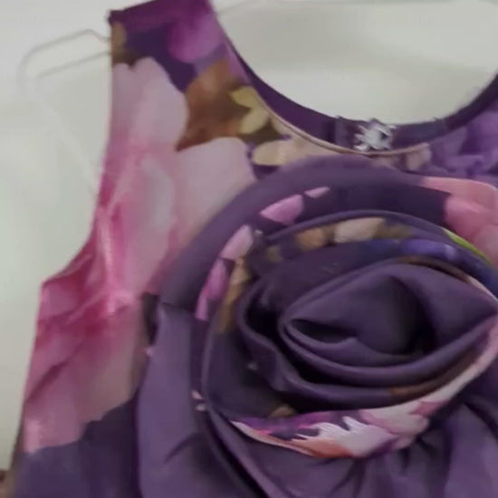 Girls Floral Party Wear Frock | Green & Purple Rose Design Birthday Dress | Premium Organza Gown