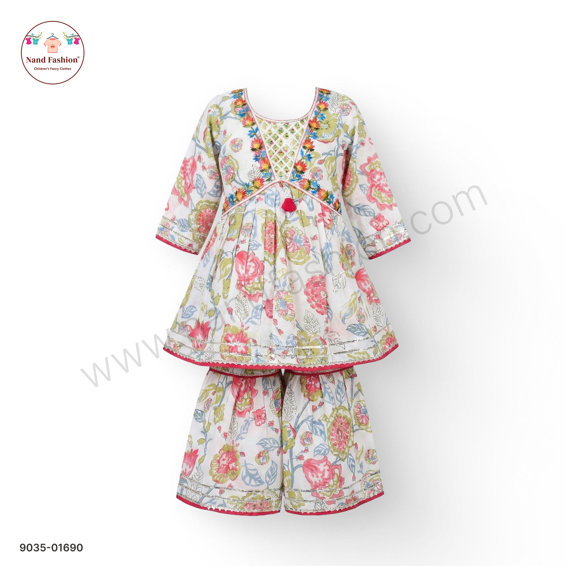 Introduce your little one to timeless ethnic elegance with this charming floral printed kurti paired with comfortable sharara pants. The vibrant floral design adds a playful touch perfect for festivals, celebrations, and special occasions. Crafted with care, this two-piece set combines traditional style with modern comfort, allowing your daughter to move freely while looking absolutely adorable. The kurti's graceful silhouette and the sharara's gentle flare create a classic look that's both sophisticated and age-appropriate. Ideal for making memorable moments even more beautiful.