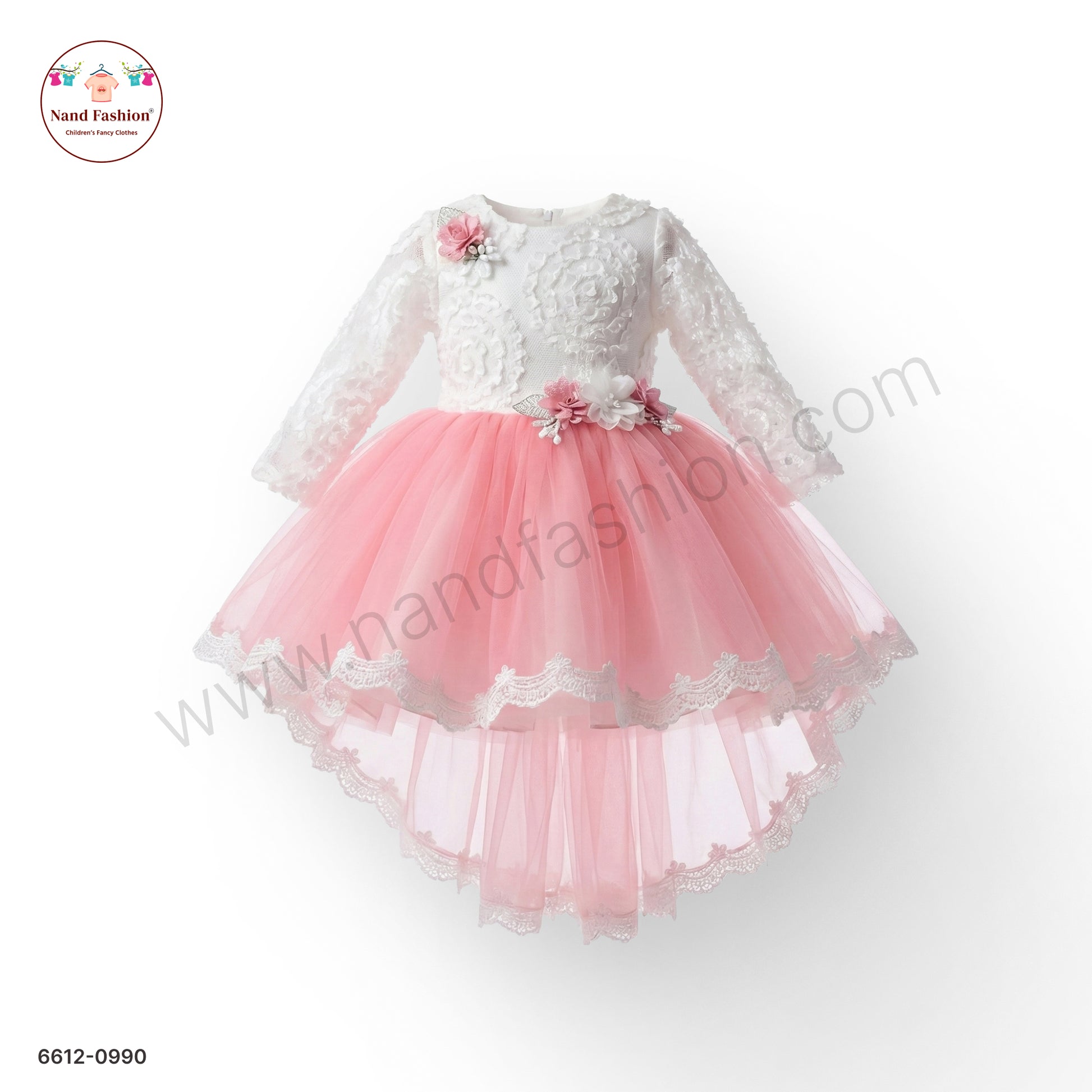 Introduce your little princess to timeless elegance with this enchanting white and pink net party wear frock. Delicate floral appliqué details adorn the bodice and skirt, creating a sophisticated look perfect for weddings, celebrations, and special occasions. The lightweight net fabric ensures comfort throughout the day, while the classic princess silhouette flatters every young girl. The soft pink accents beautifully complement the pristine white base, offering a graceful balance of colors. Ideal for making cherished memories at festive gatherings, this dress combines traditional charm with contemporary style that your daughter will love wearing.