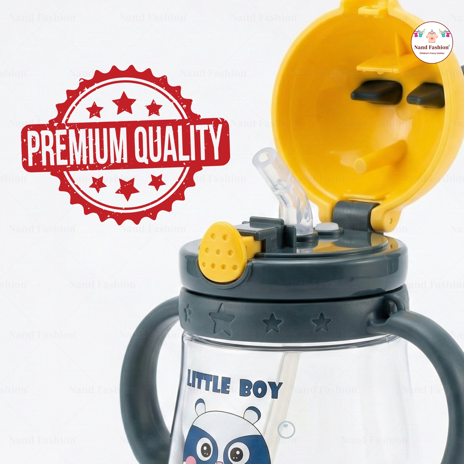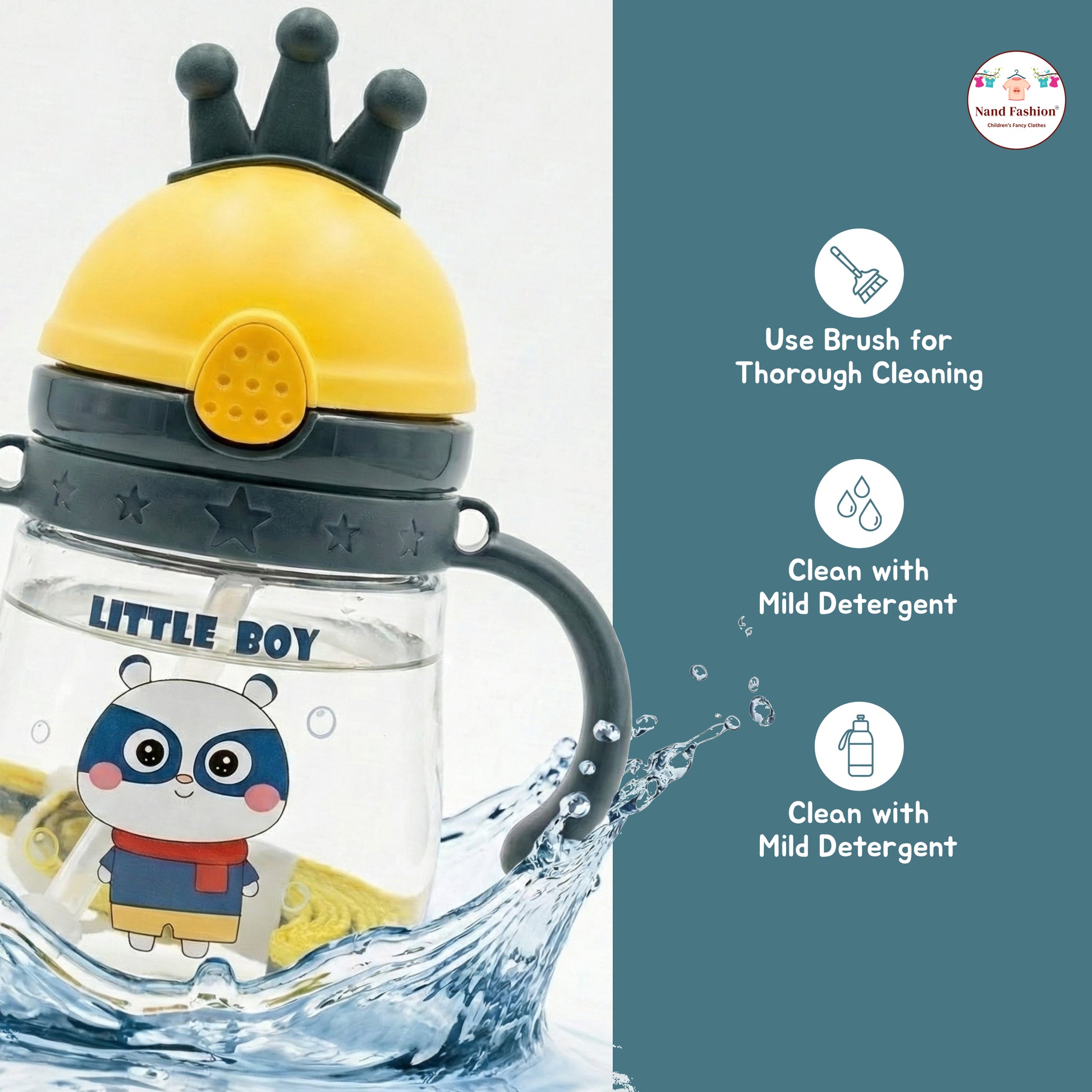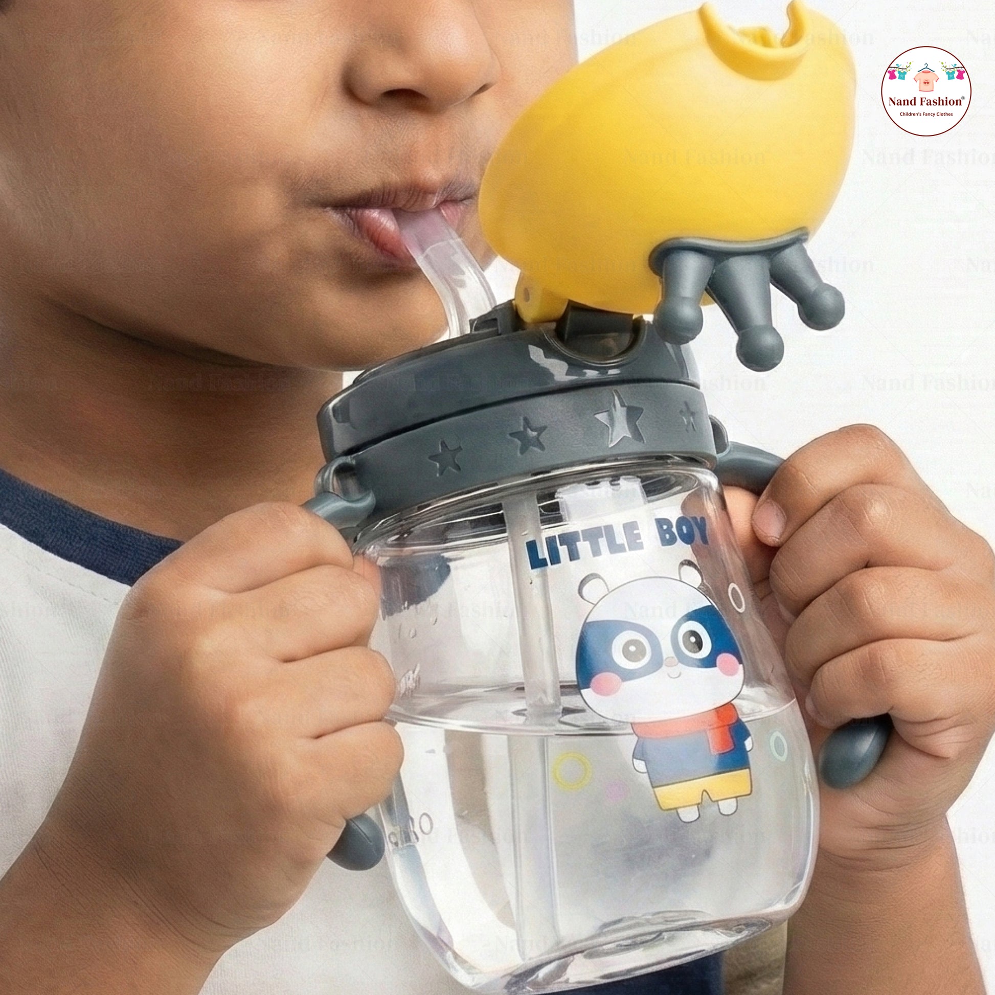 Keep your little one hydrated throughout the day with this charming kids water bottle designed specifically for toddlers. Featuring a secure leak-proof design, it prevents messy spills in bags and backpacks. The built-in straw and ergonomic handle make it easy for small hands to hold and drink independently. Adorned with playful cartoon characters, this sipper bottle encourages kids to stay hydrated while having fun. Available in cheerful pink and dark green, it's the perfect companion for school, playdates, and outdoor adventures. Durable and easy to clean, this bottle supports your child's hydration habits with style and practicality.