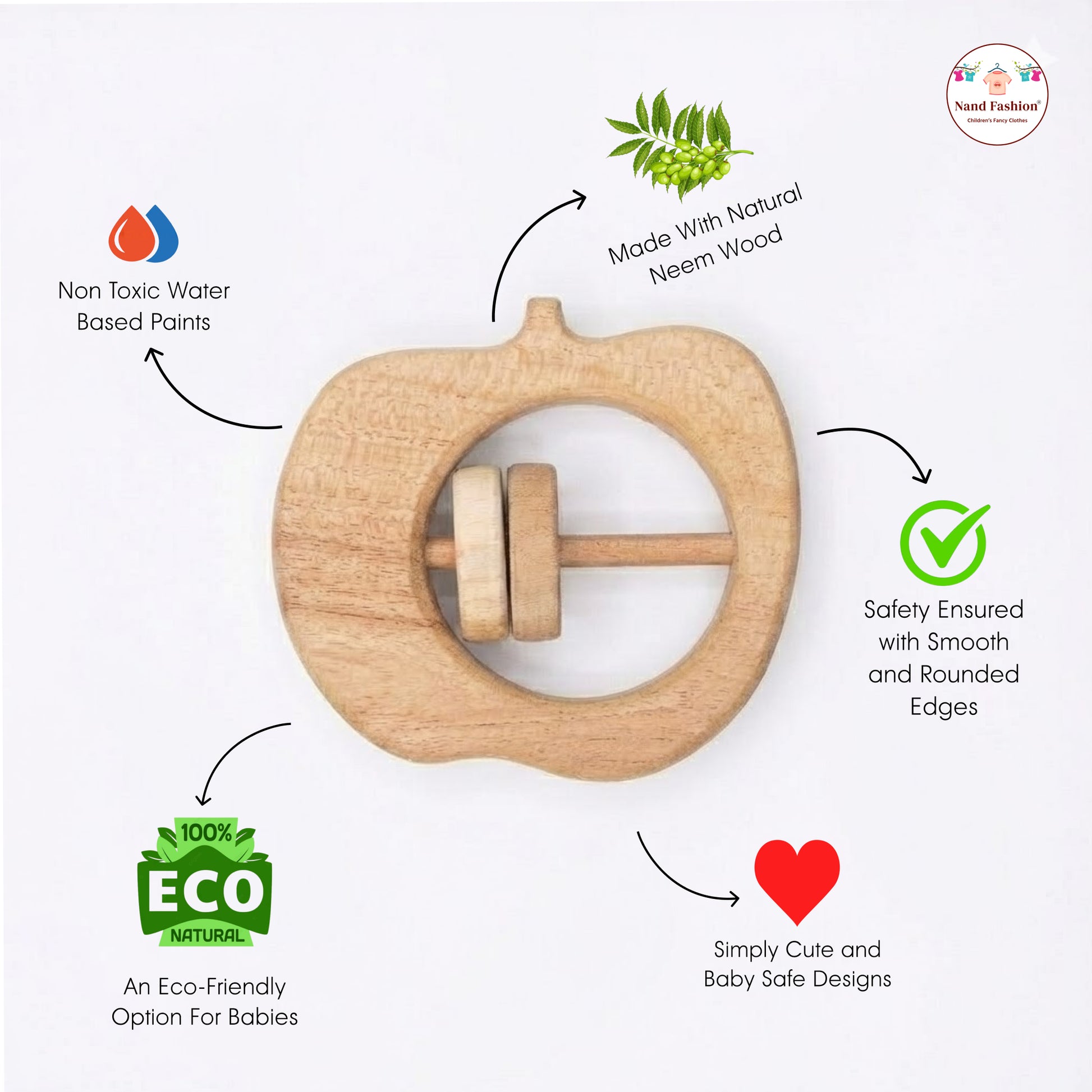 Neem Wood Baby Toys | Organic & Eco-Friendly Wooden Toys | Teethers, Rattle & Push Toys | Safe for Newborns & Toddlers