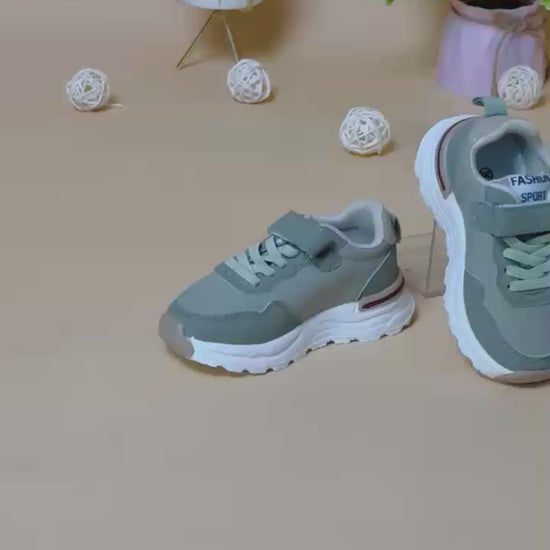 These lightweight grey sneakers are perfect for active kids, offering comfort and support for running and casual wear. Designed for both boys and girls, they provide a snug fit that adapts to little feet while ensuring breathability and flexibility. Ideal for sports and everyday activities, these shoes help keep kids comfortable and confident throughout their busy days.