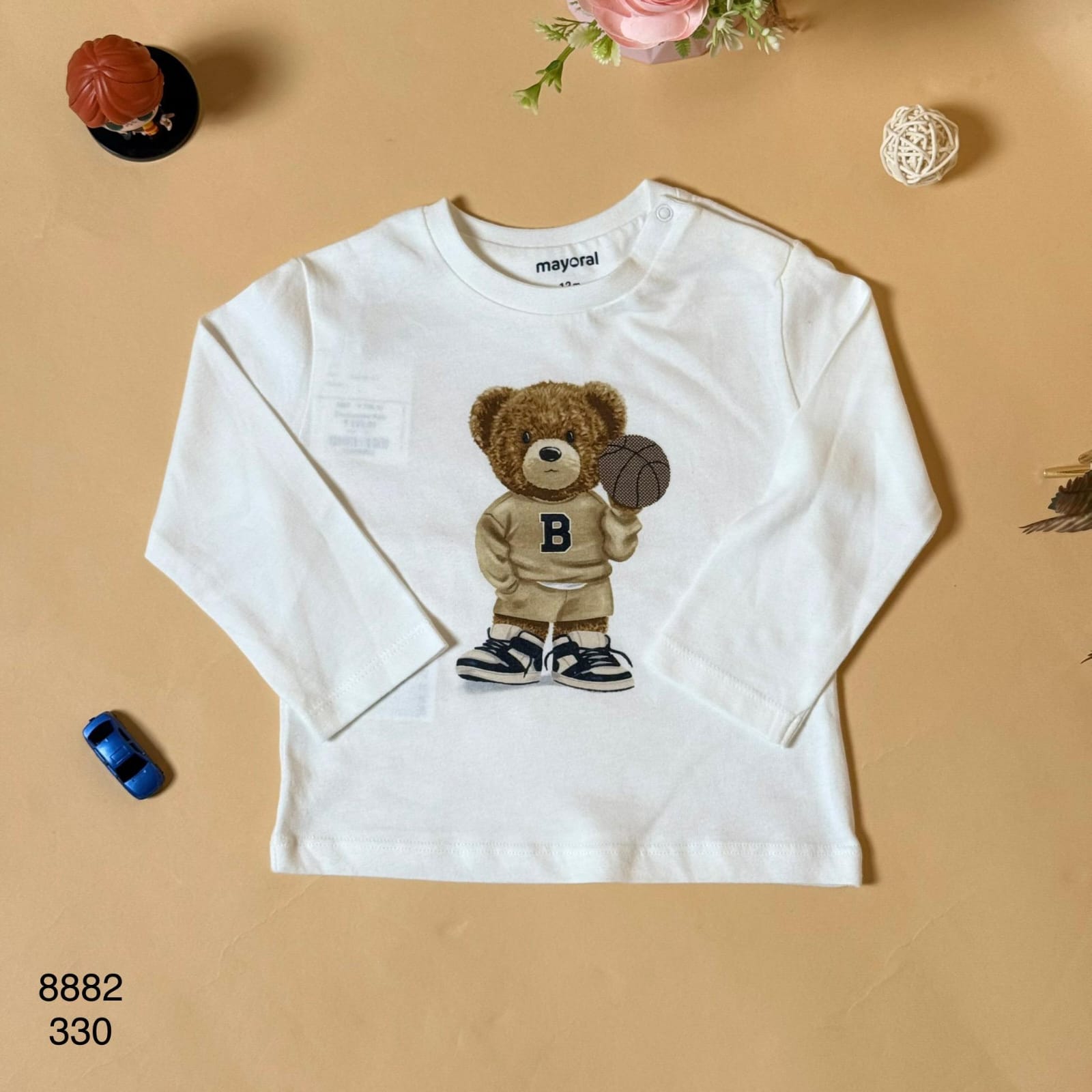 This Teddy Basketball Printed Full Sleeve T-Shirt combines comfort and style for your little one. Made with soft, warm fabric, it’s perfect for winter wear. The adorable teddy cartoon print adds a playful touch, while the full sleeves provide extra warmth. Ideal for boys’ daily fashion, this tee from the Mayoral kids collection ensures your child stays cozy and cute throughout the season.