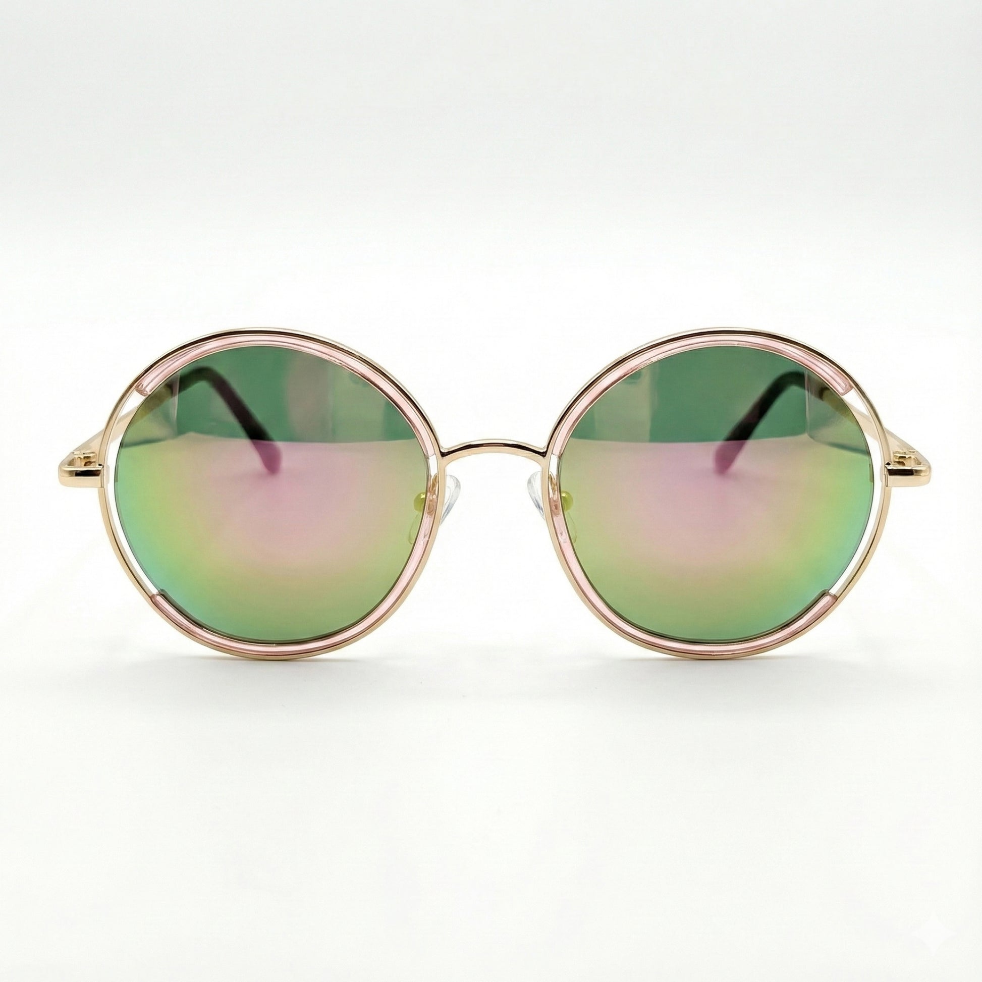 Elevate your summer style with these chic round sunglasses designed for the modern woman. Featuring reflective mirror lenses that make a bold fashion statement while providing essential UV protection to shield your eyes from harmful rays. The timeless round frame flatters various face shapes and pairs effortlessly with any outfit. Whether you're heading to the beach, running errands, or enjoying outdoor adventures, these versatile goggles deliver both protection and contemporary flair. Lightweight and comfortable for all-day wear, they're the perfect accessory to complete your look while keeping your eyes safe and stylish.