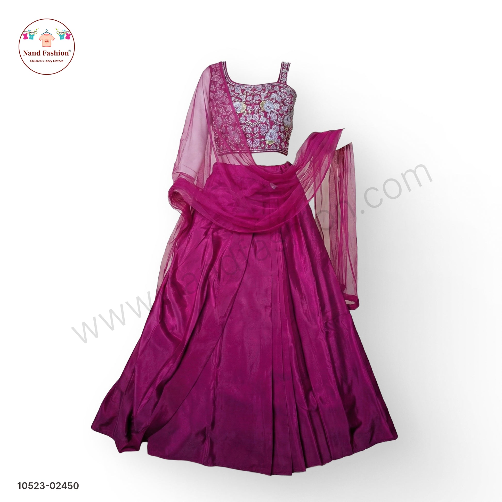 Celebrate special moments in style with this exquisite wine purple chaniya choli set, designed to make your daughter feel like a princess. The intricately embroidered choli features traditional craftsmanship paired with a gracefully flowing chaniya skirt, while the delicate net dupatta adds an ethereal finishing touch. Perfect for weddings, festivals, and cultural celebrations, this premium lehenga set combines comfort with elegance. The rich wine purple hue complements all skin tones beautifully, making it a versatile choice for any festive occasion. Crafted with attention to detail, this ensemble ensures your little one stands out with confidence and charm.